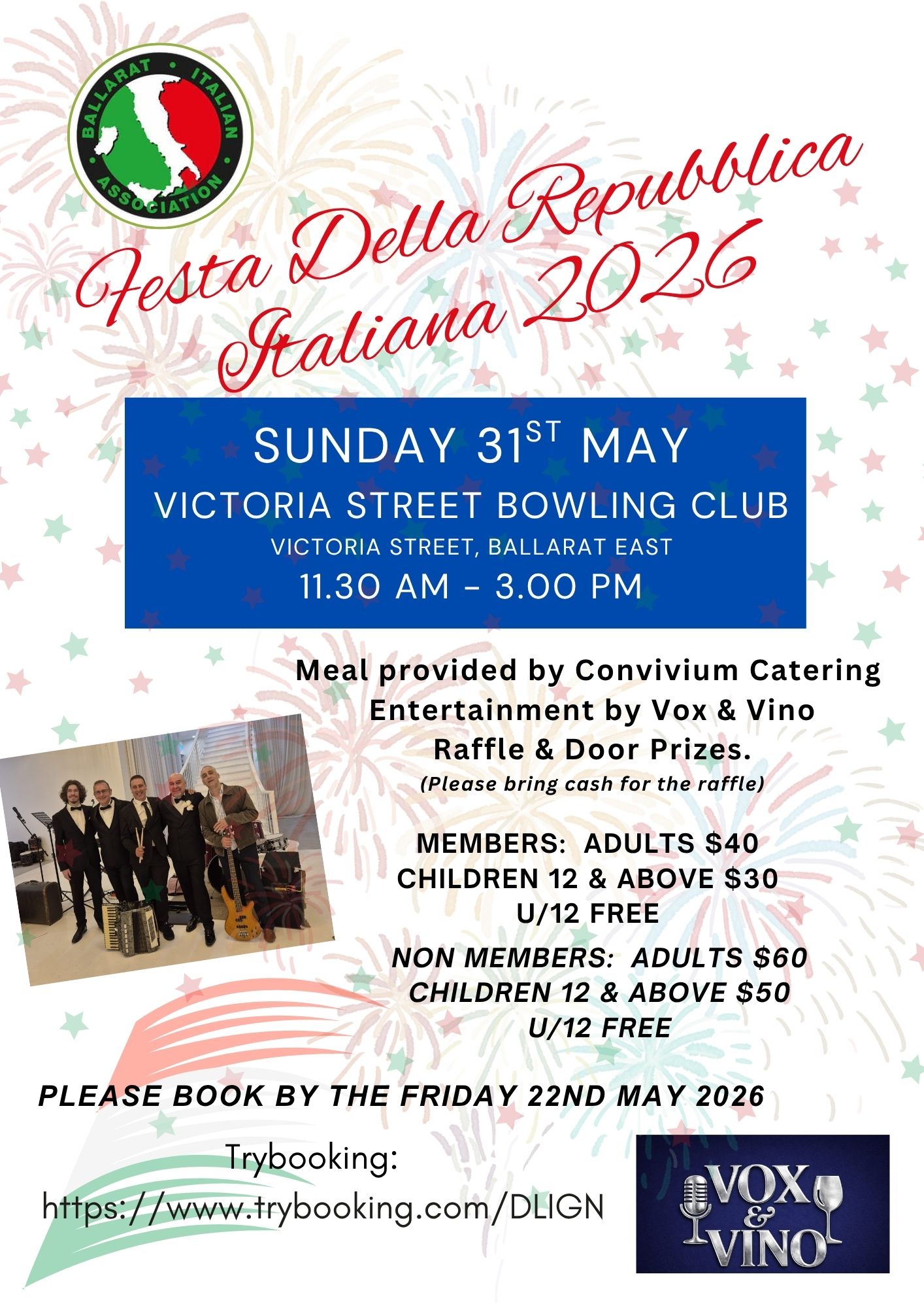 The Ballarat Italian Association welcomes individuals and families who are interested in celebrating life in a spirit of friendship, harmony and learning. Functions, activities and events are held regularly at various locations and venues. Italian culture and language activities are organised for those wishing to immerse themselves in all things Italian.